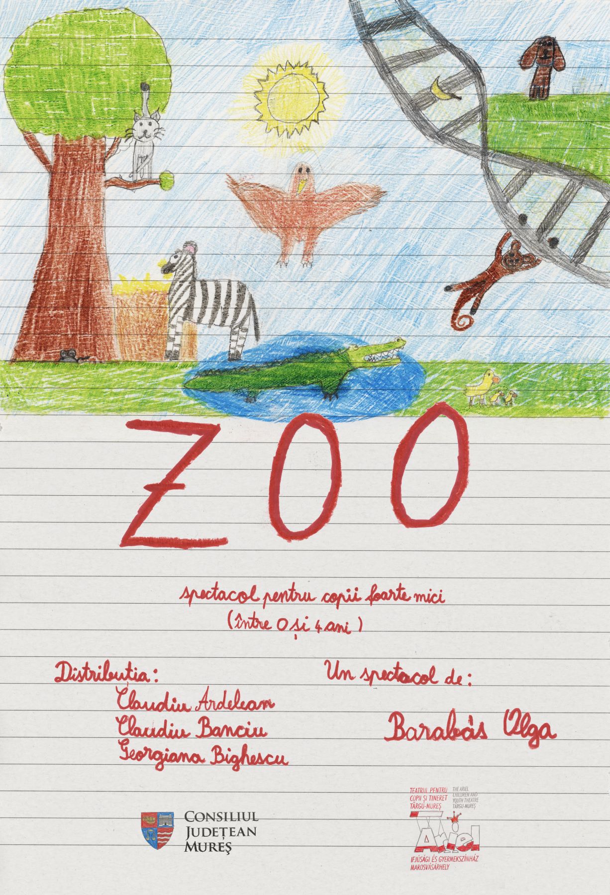 Zoo este primul spectacol al secției române gândit și construit pentru copii foarte mici, respectiv 0-4 ani, în care interacțiunea copii-actori este foarte importantă.
